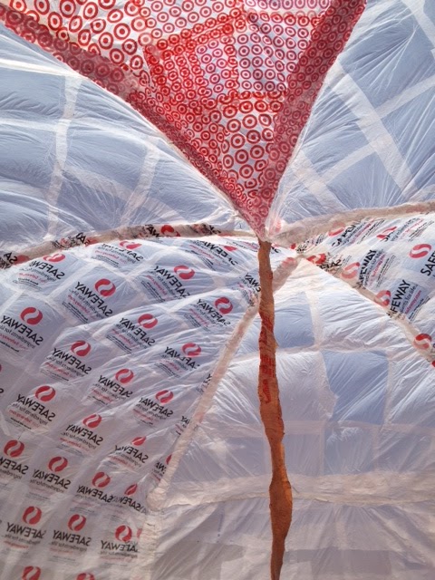 For my 3D design class, our group decided to make an inflatable to focus on the space provided under a beach umbrella. The original design was a rain umbrella with a large inner handle but through trial and error, we decided as a group that a beach umbrella with an inner rope handle would work out better. Working with solely recycled plastic bags was definitely a learning experience. Using different mediums is always interesting. Going into this project with no idea how the bags would look when they were inflated, I think our project was a success. By fusing six rectangles, six triangles and a floor mat, we were able to create a spacious cavity within the plastic bags. I think I can speak for our whole group when I say we were very happy with the result, and it definitely felt like we were sitting in the beach under an umbrella with the sun shinning down on us.